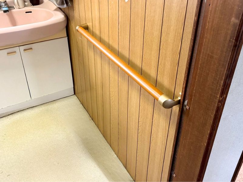 手すりを設置したことで、トイレでは扉の開け閉めや立ち座りの動作が以前より楽になりました。また、浴室の出入りや浴槽内のまたぎ動作、浴槽のふちからの立ち座り、浴室内の移動が安心して動けるようになりました。