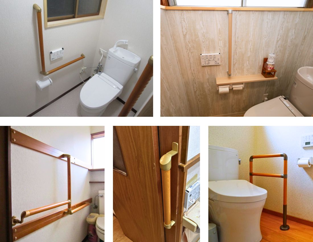 トイレでは、限られたスペースで体の向きを変えたり姿勢を保ったりするため、手すりが役立ちます。
