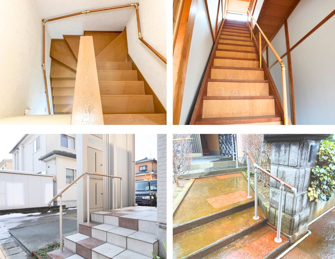 特に冬の新潟では、積雪や凍結によって足元が滑りやすくなるため、屋外階段でも手すりがあると安心です。