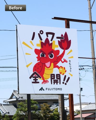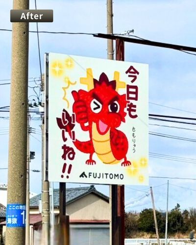 看板のもう片面には、フジトモのキャラクター 「ともりゅう」🐉✨