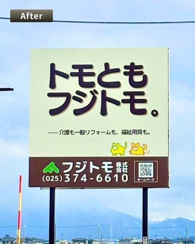 「あ、フジトモの看板だ!」と、見てくださっている方もいらっしゃるかもしれません😊
