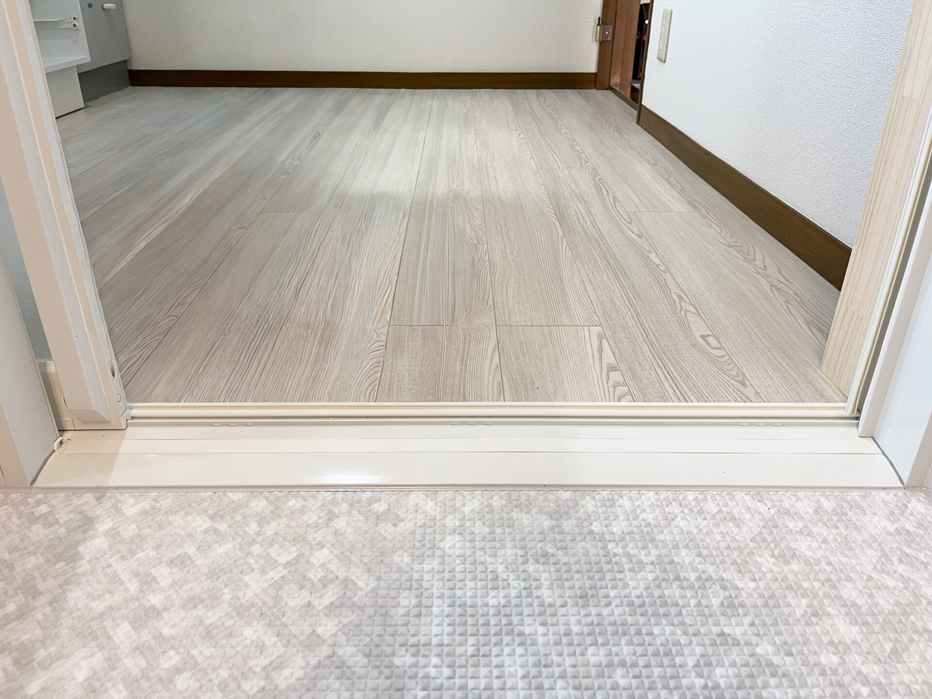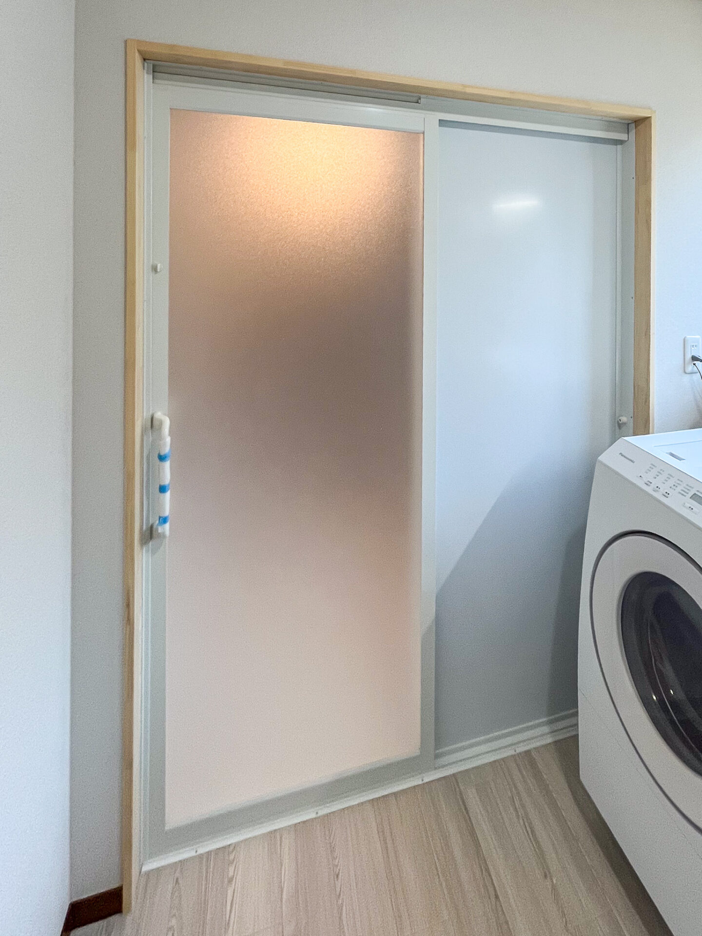 脱衣室と浴室の間の段差を解消し、開き戸から引き戸にすることで、出入りしやすい動線を確保しました。