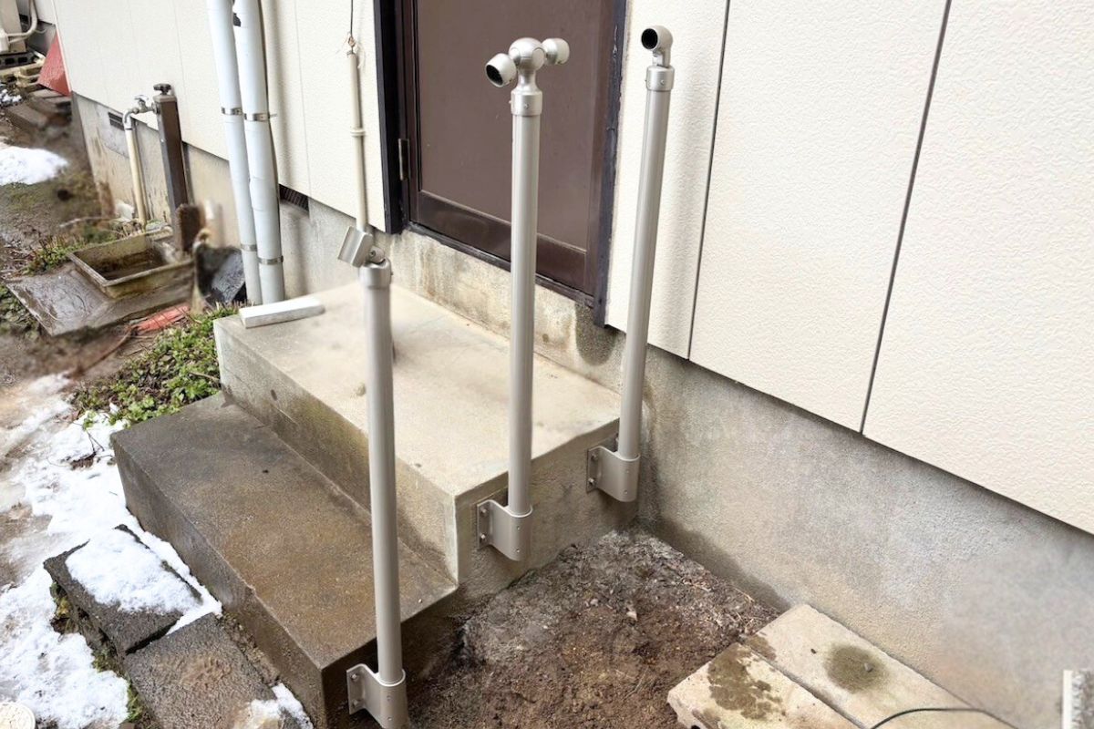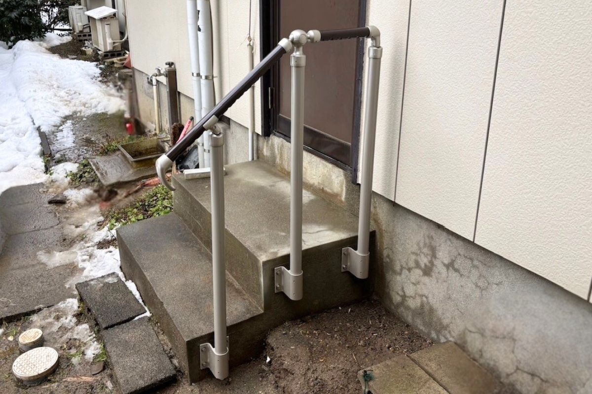 勝手口の屋外階段に、手すりを設置させていただきました。